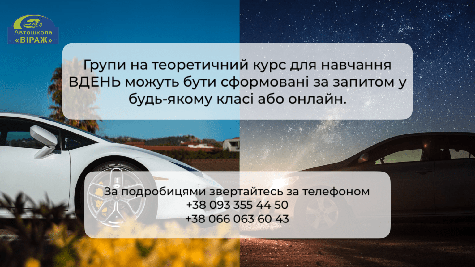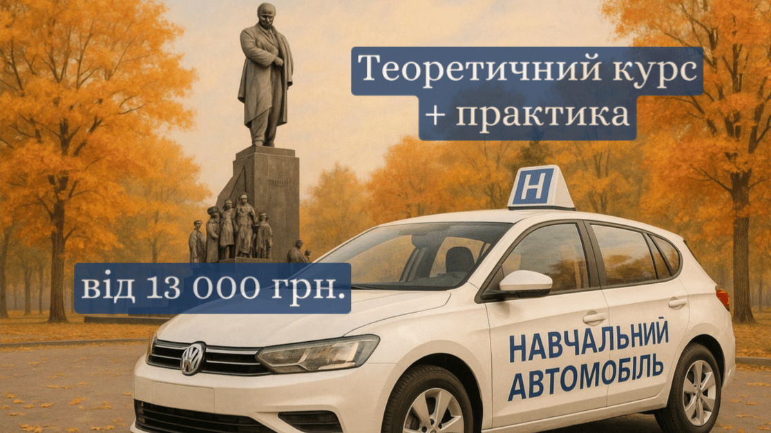 Базові навички водіння автомобіля, тренування на майданчику та дорогами міста, проходження екзаменаційних маршрутів СЦ МВС.
